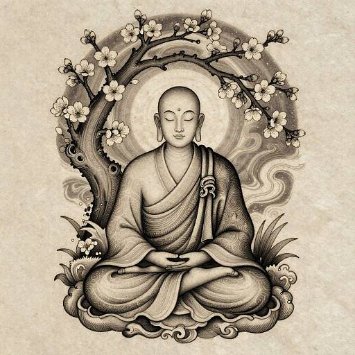 Monochrome ink illustration in a vintage tattoo flash aesthetic featuring tattooed belly dancer with ankle bangles and veil, framed by crescent sun symbol above, swirling smoke tendrils flanking, and lotus flowers below. Printed on rich tapestry cloth, with crisp linework, stippling and crosshatching, bold negative space, subtle vignette, museum-print finish, high contrast, fine detail, gritty yet elegant mood.