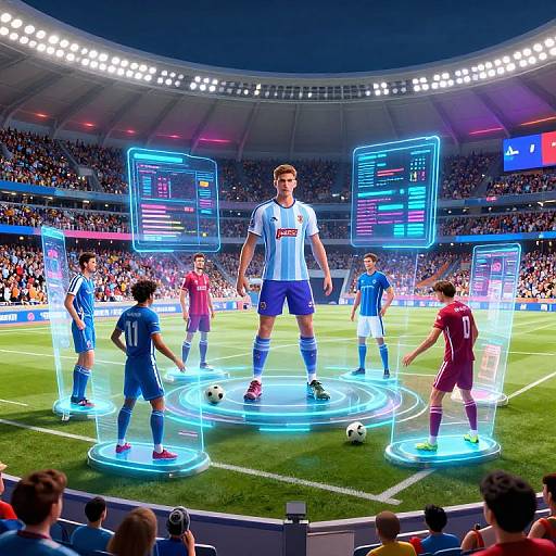 sports babes team huddled together before a match in a stadium, diverse ethnicities, vibrant uniforms with detailed logos and textures, intense focus and camaraderie, dramatic lighting and crowd blurred in background