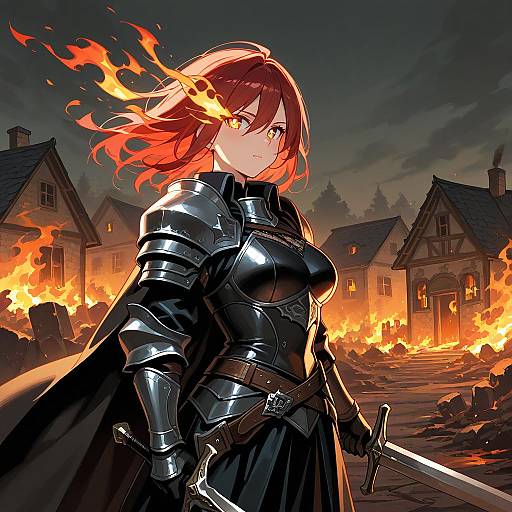 Fire painting of a flame elemental in a desolate battlefield, with vivid fire textures and intense atmospheric lighting.