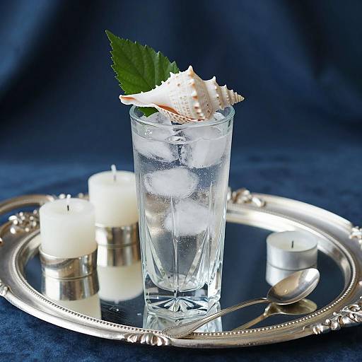 A glass sculpture featuring ambient light, elegantly placed on a sleek glass table draped with a soft velvet cloth. The backdrop is a muted gray, captured in the iconic style of Henri Cartier-Bresson, emphasizing a luxurious and sophisticated aesthetic. This still life exudes elegance, perfect for a high-end magazine, with hyper-detailed realism in stunning 8K resolution.