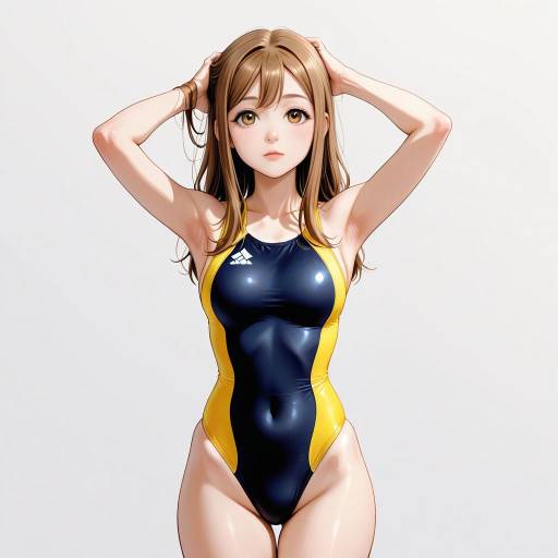 1girl, realistic face, Crochet one-piece swimsuit, retro style, bold coral and navy stripes, open back design, high-cut legs, soft acrylic blend, detailed shell motifs, comfortable fit, chic and stylish for poolside lounging.