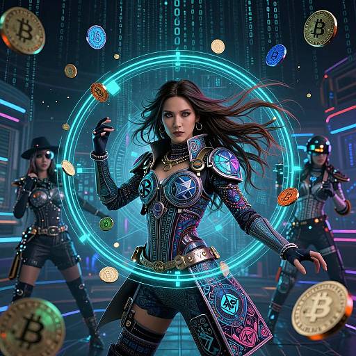 Artwork of bitcoin logo as an ancient artifact, engraved on a silver disc, surrounded by cosmic patterns, set in a celestial observatory