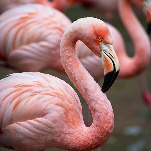 A detailed digital vector art image of a flamingo, with expressive, soulful eyes and a sharp, defined chin, isolated without a background. The feathers is richly textured, and its pupils are clearly visible, creating a lifelike and emotionally engaging connection. The style is vibrant and lifelike, focusing on intricate details and clean, neutral isolation to emphasize the flamingo's features.