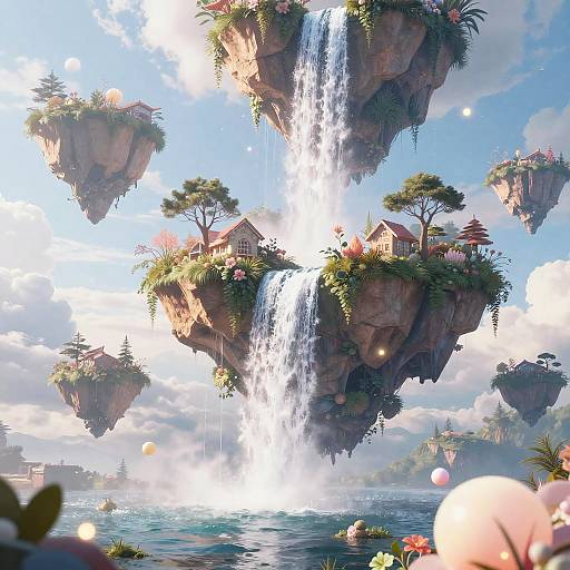 A surrealism portrayal of cosmic dreams, set against floating islands. This scene is inspired by the artwork of Salvador Dalí and Rene Magritte.