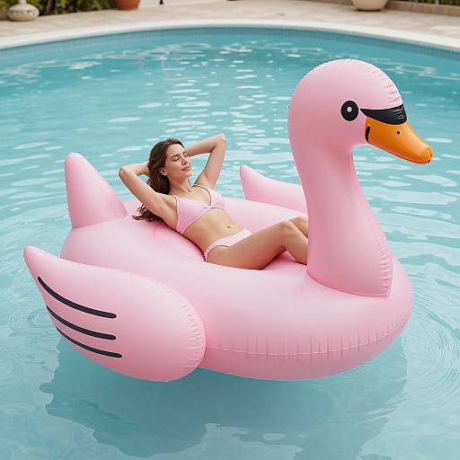 Shojo, Woman with a serene look, floating on her back in crystal clear water by the beach. Advertising campaign for fiberglass pool, with a beautiful female model, ultra-realistic, 8k, photo-realistic, high resolution, high quality.