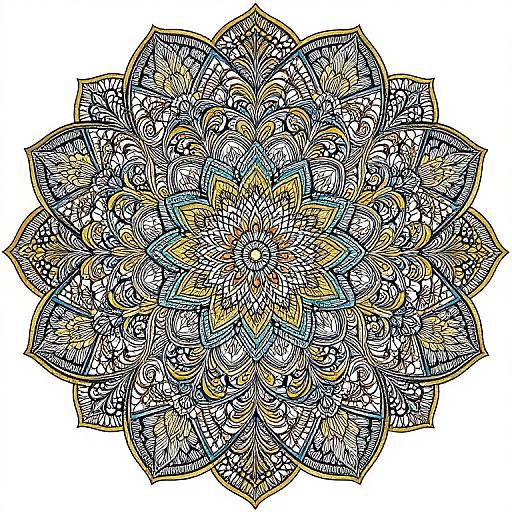 This is a digital artwork featuring two vibrant, intricately patterned halves. The left side has ornate, swirling designs in rich browns, golds, and dark greens, resembling Baroque-style motifs. The right side showcases a more geometric pattern with blue, orange, and white tiles, reminiscent of traditional mosaic work. The contrast between the two halves creates a striking visual effect.
