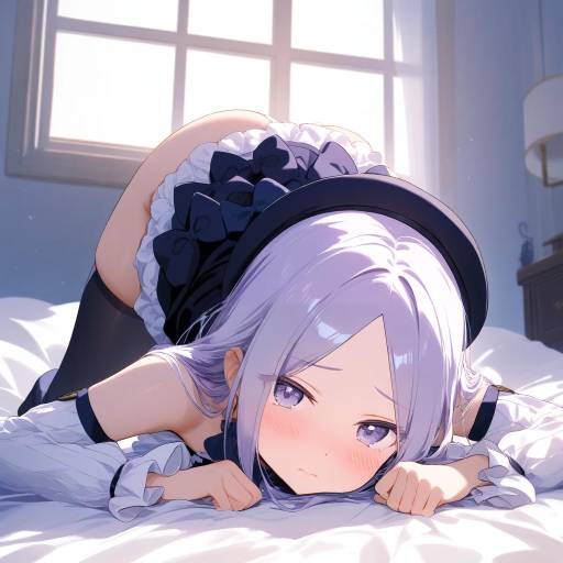 1girl, top knot, brown eyes, deep red, hair ornament, ponytail, hairclip, garden path, large breasts, downblouse from behind, downblouse, from behind, tank top , white tank top, cleavage, from above, nape, head down, looking at viewer, looking back, looking up, sideways glance