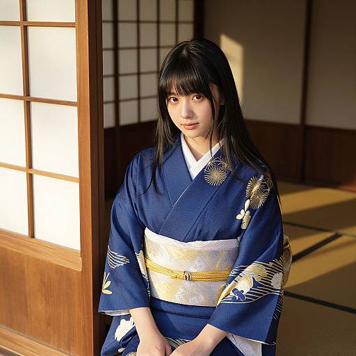 an inspired calligrapher, wearing a flowing kimono robe, drawing on a traditional ink brush and rice paper, surrounded by ink splashes and elegant swirling characters, in a minimalist Japanese tea room, depicted in the refined and narrative-driven style of Takeshi Obata.