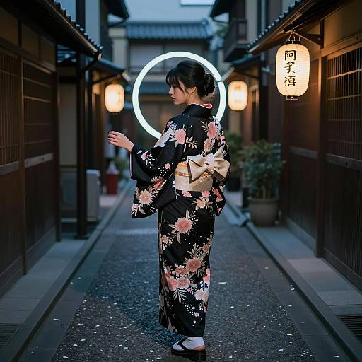ancient Kyoto street festival under twinkling lanterns, paper parasols and kimono-clad figures, in stunning digital art rendered in detailed Edo period ukiyo-e, overlaid with kiriko kaleidoscopic stained glass design, traditional Japanese palette, dynamic composition, ultra-detailed, masterpiece, trending, award-winning, hdr, 4k, anamorphic widescreen