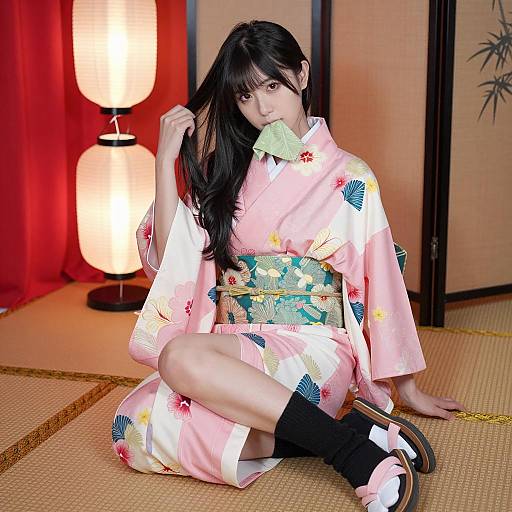 Misa Amane cosplay costume outfit black slinky mini dress with ruffled hem, sheer black arm sleeves, twin high ponytails, layered silver chain necklace, overhead shot, bokeh
