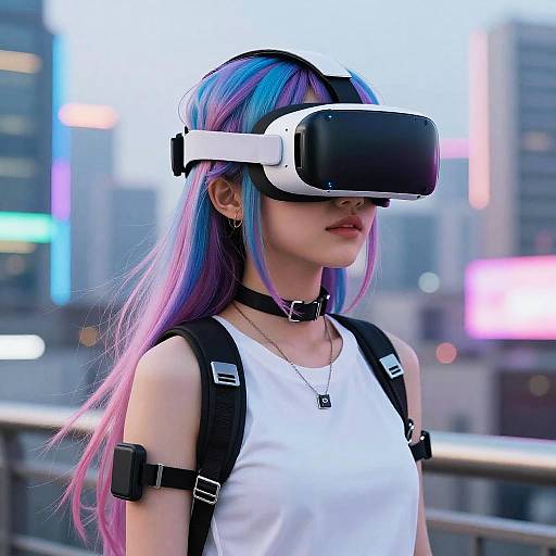 A self-portrait of virtual reality, embodying cybernetic beauty and futurism, with 3D avatars, neon streetwear, glitch art and dystopian aesthetics, inspired by Jenny Holzer, Banksy, Takashi Murakami