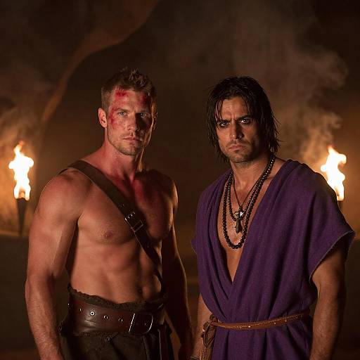an flaming blade of ancient rarity, displayed on a rustic pedestal as a prominent artifact