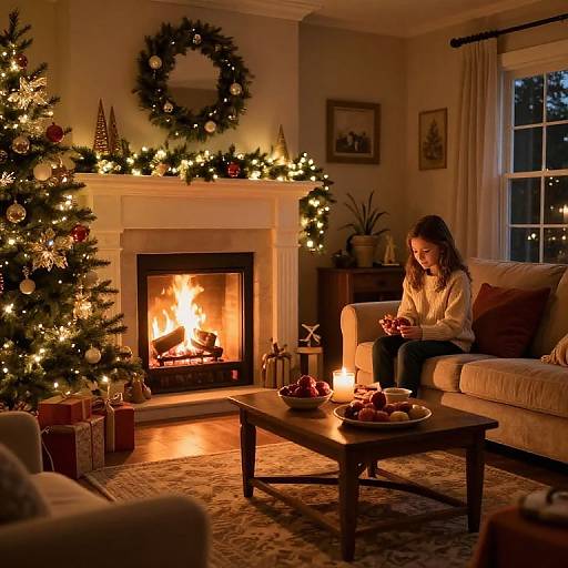 a cozy cabin interior where warm light spills from a fireplace; the temperature inside rises as the light flickers, simulating the changing seasons