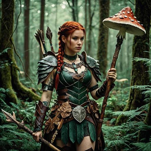 a highly detailed digital portrait of a fantasy warrior with fiery red hair and piercing green eyes, wearing an ornate green hood and intricate golden armor adorned with emerald jewels, dramatic warm lighting highlighting the textures and depth of the armor and face, cinematic and heroic atmosphere, ultra realistic, 8k resolution