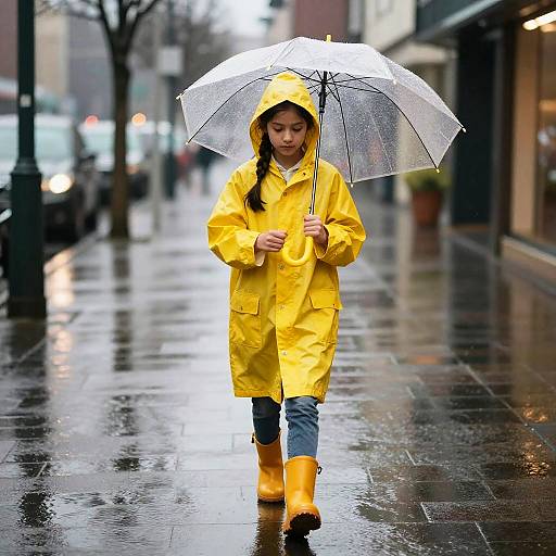 Girl Waterproof Coat, woman standing in a puddle of water in a city street