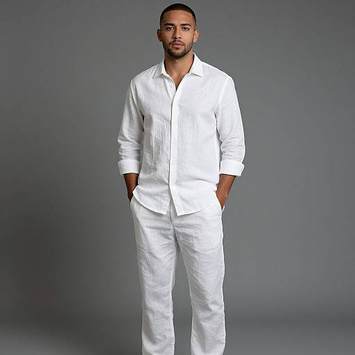 Minimalist black-and-white line portrait of middle-aged man with slicked-back hair, stoic gaze, adorned with thin metallic band with angular shapes. A tall vertical white stripe divides the center while soft gray bands cap the top and bottom. Ultra-thin monoline, clean contours, high contrast, ample negative space, Minimalism + brush pen calligraphy, elegant, no shading, centered composition, white background, quiet contemplative atmosphere.