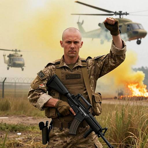 A vibrant illustration of a brave firefighter rescuing a kitten from a burning building, with flames roaring, hoses spraying water, and smoke billowing, in an urban environment, created in heroic rescue art, intense and cinematic