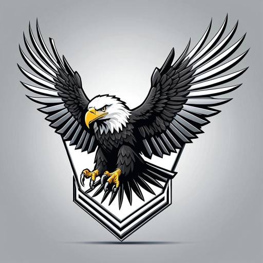Bald eagle logo with outstretched wings, majestic pose, United States, red white and blue color scheme, vintage badge style