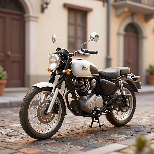 Illustrated T-shirt design of a flat graphic motorcycle with urban graffiti wall, vector, solid white background, simple color palette