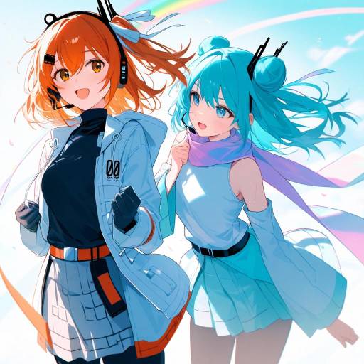 multiple_girls, 2girls, black_hair, long_hair, brown_eyes, breasts, yuri, looking_at_another, stylish scarf, abstract art, moonlit beach