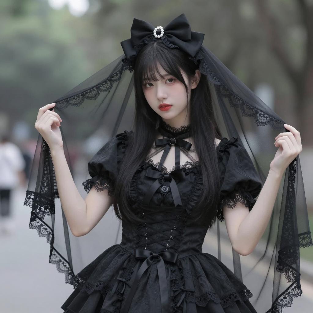 Mysterious Woman in Lace Dress Portrait