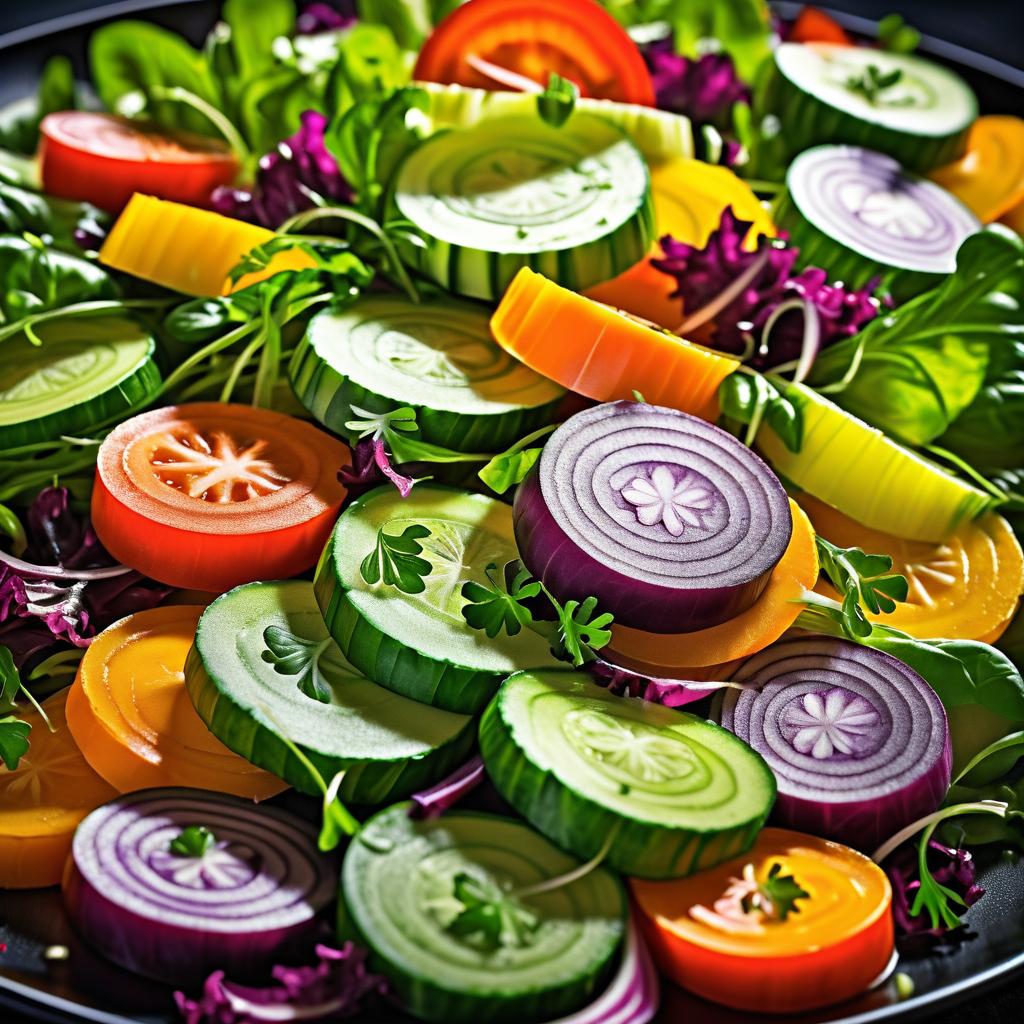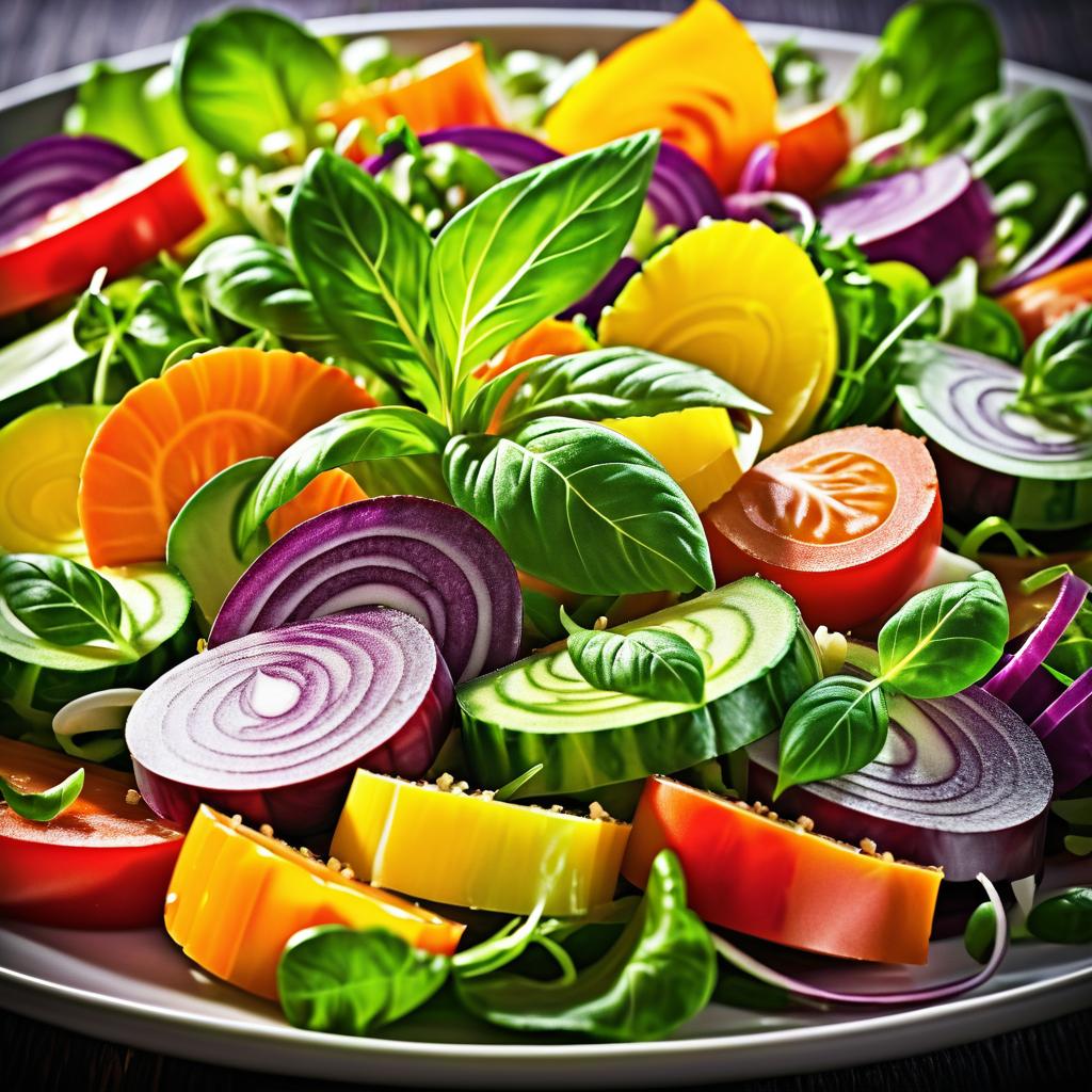 Macro gourmet photography of vibrant vegetable salad in HDR, professional quality with vibrant details.