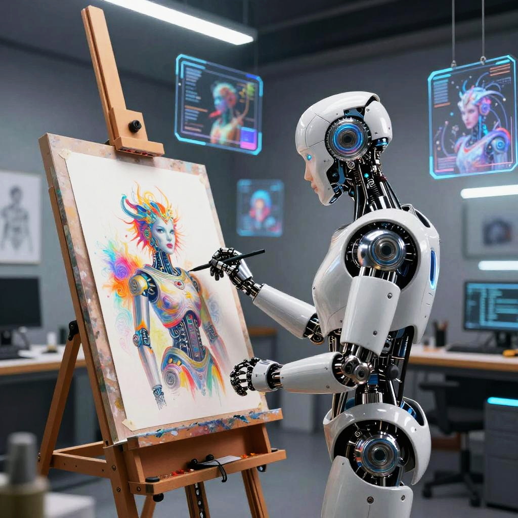 Futuristic Robotic Artist Creating Digital Masterpieces