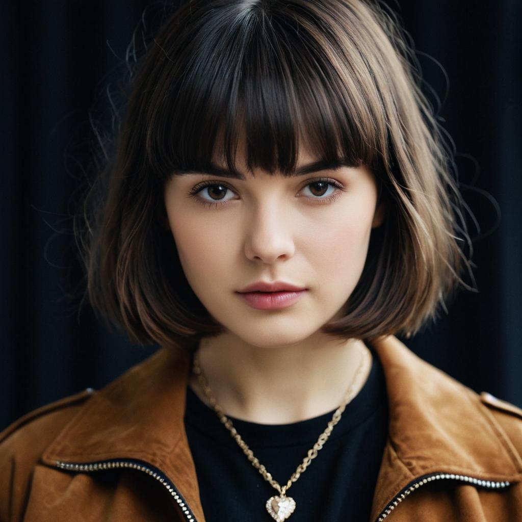 Young Woman with Short Curtain Bangs and Wavy Hair