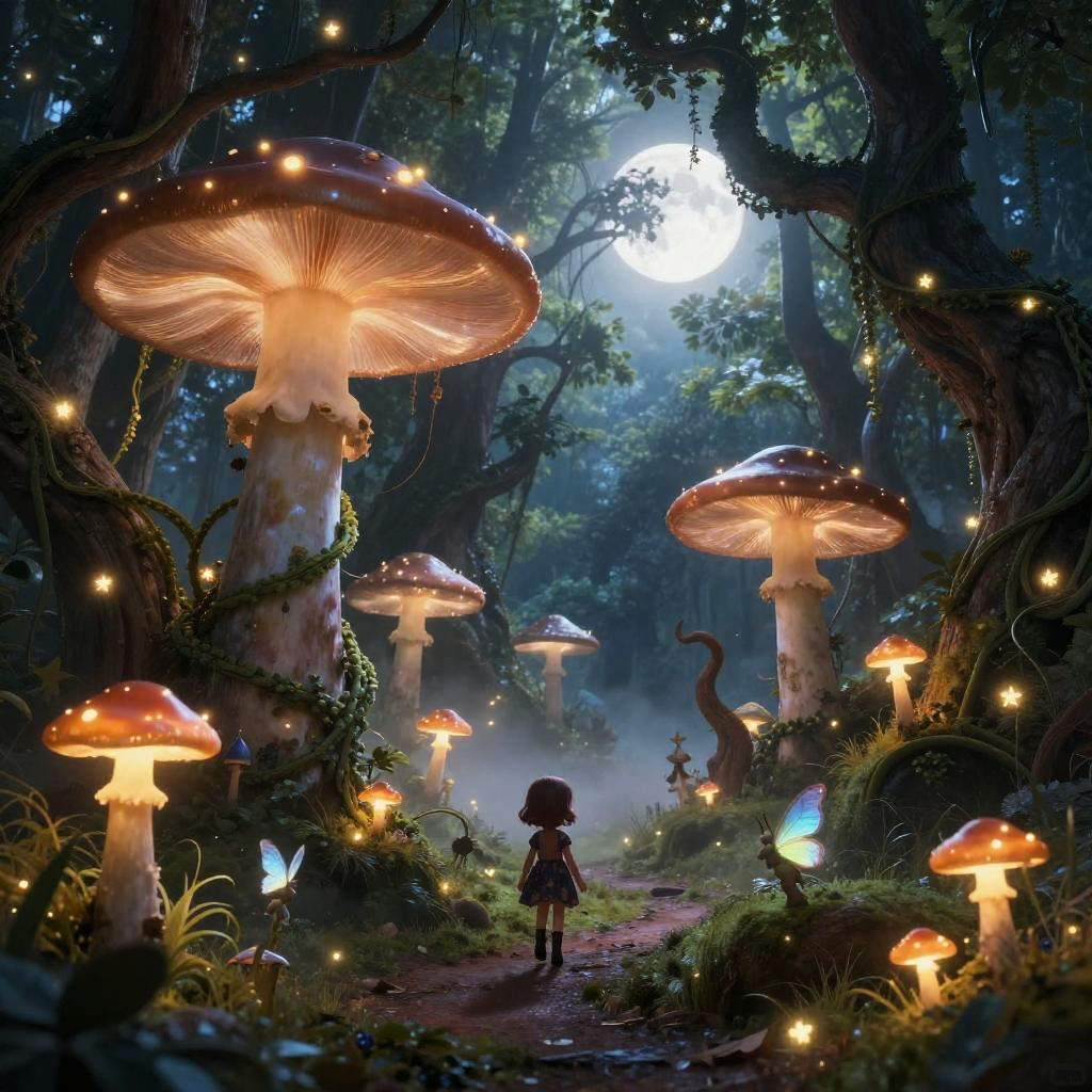 Enchanted Forest with Luminescent Mushrooms