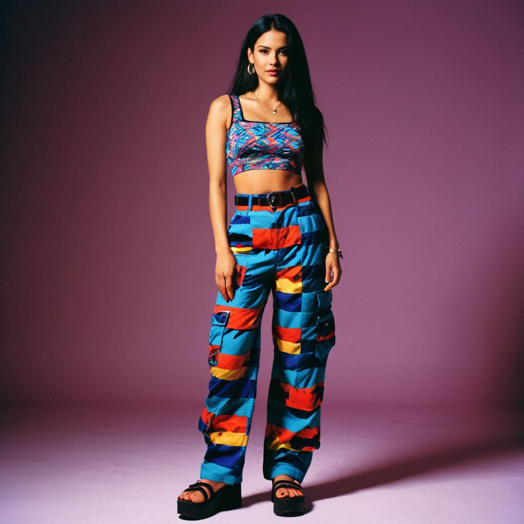 Woman in Vibrant 90s Outfit with Cargo Pants