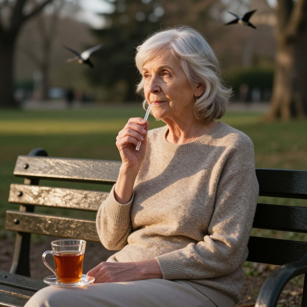 Elder Woman Savoring Warm Coffee