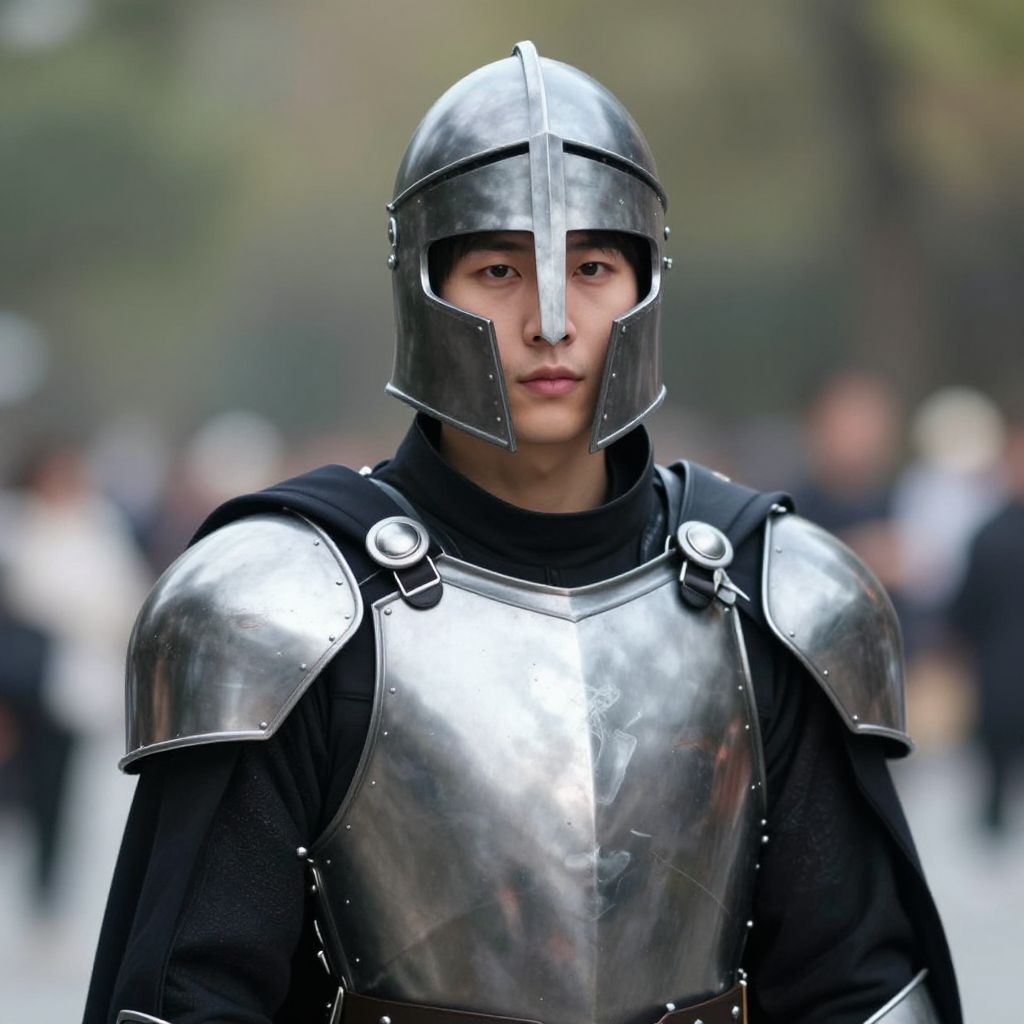 Knight in Silver Armor with Red Scarf