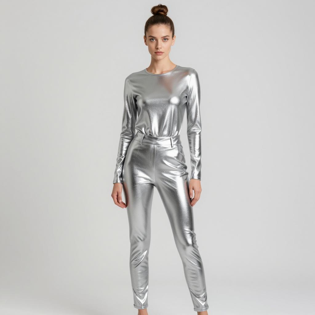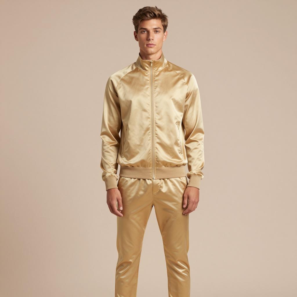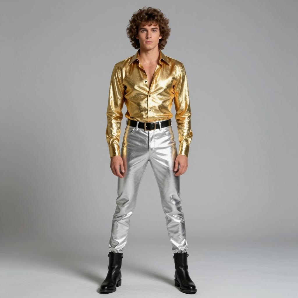 Modern Young Man in Silver Satin Outfit