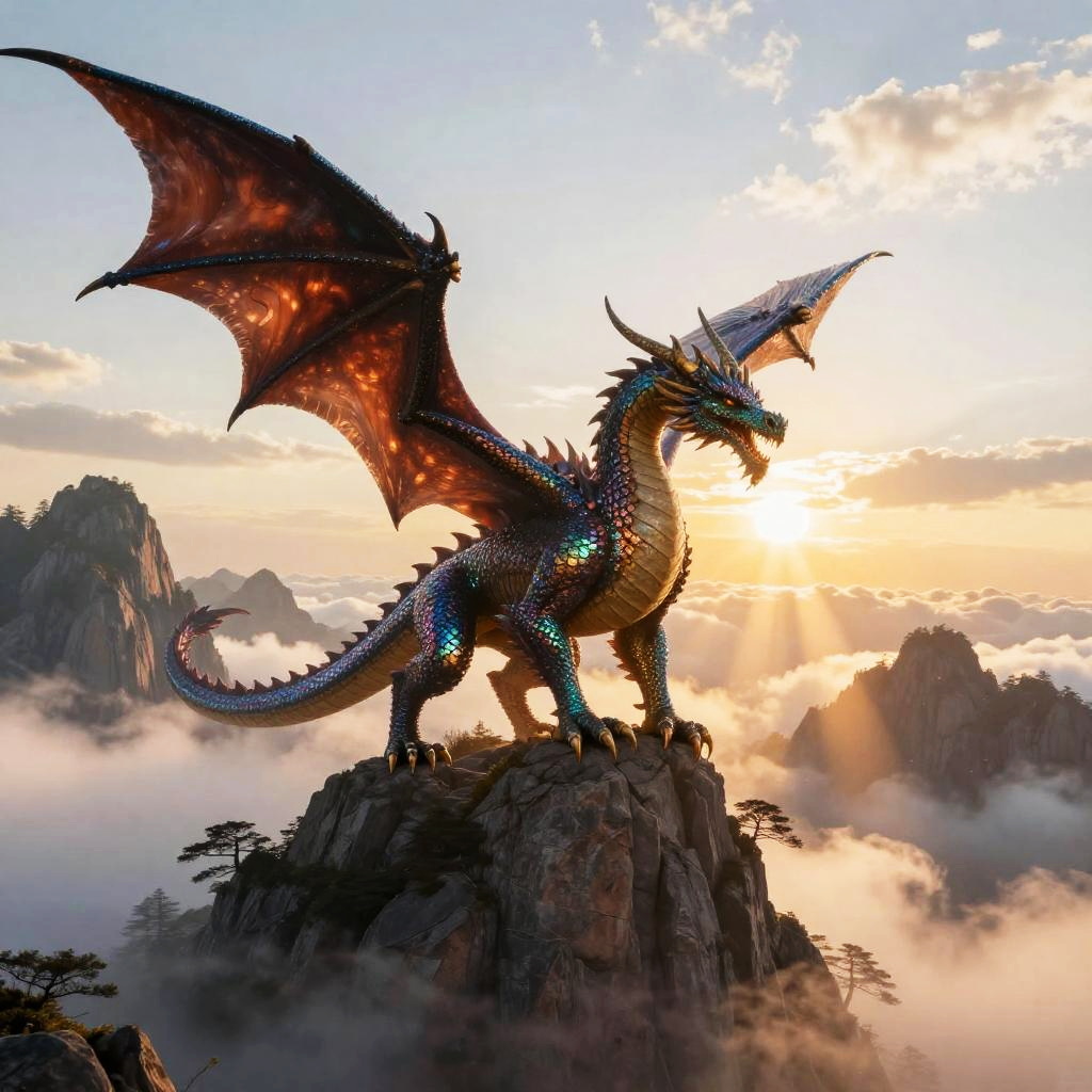Enterie depicted as a mythical creature emerging from a crystal-clear lake, surrounded by towering snowy mountains, reflective water surface, soft sunlight creating sparkles on water, detailed scales and elegant features, fantasy atmosphere.