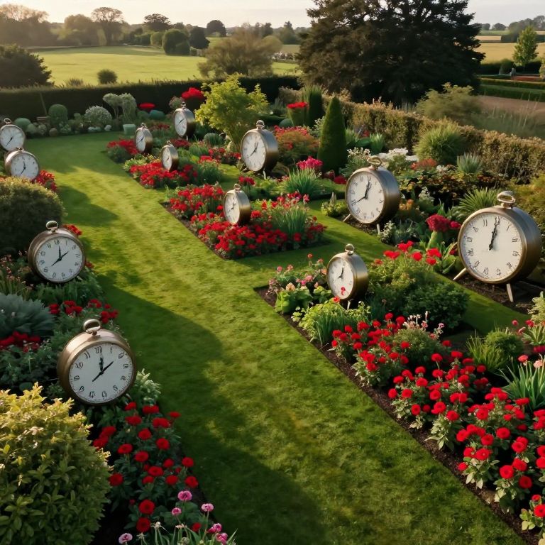 Surreal English Garden with Clocks