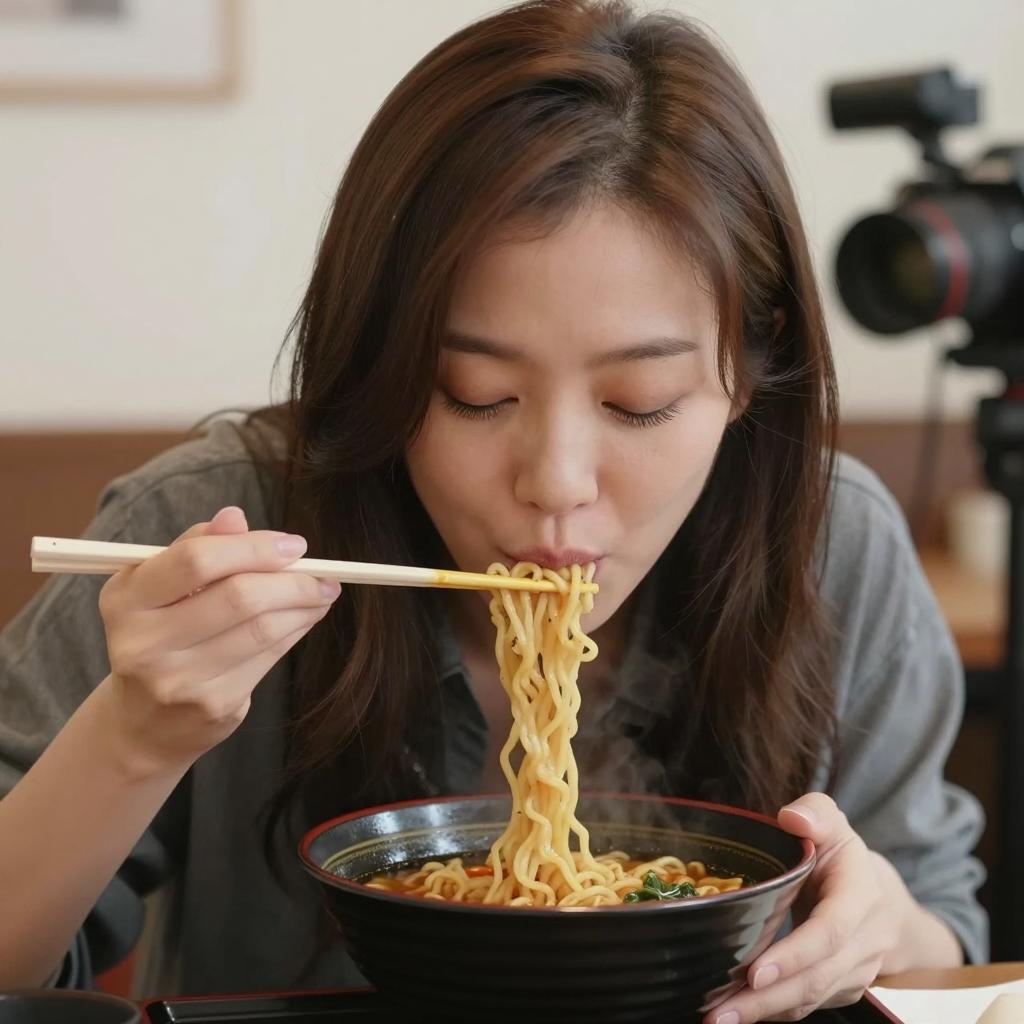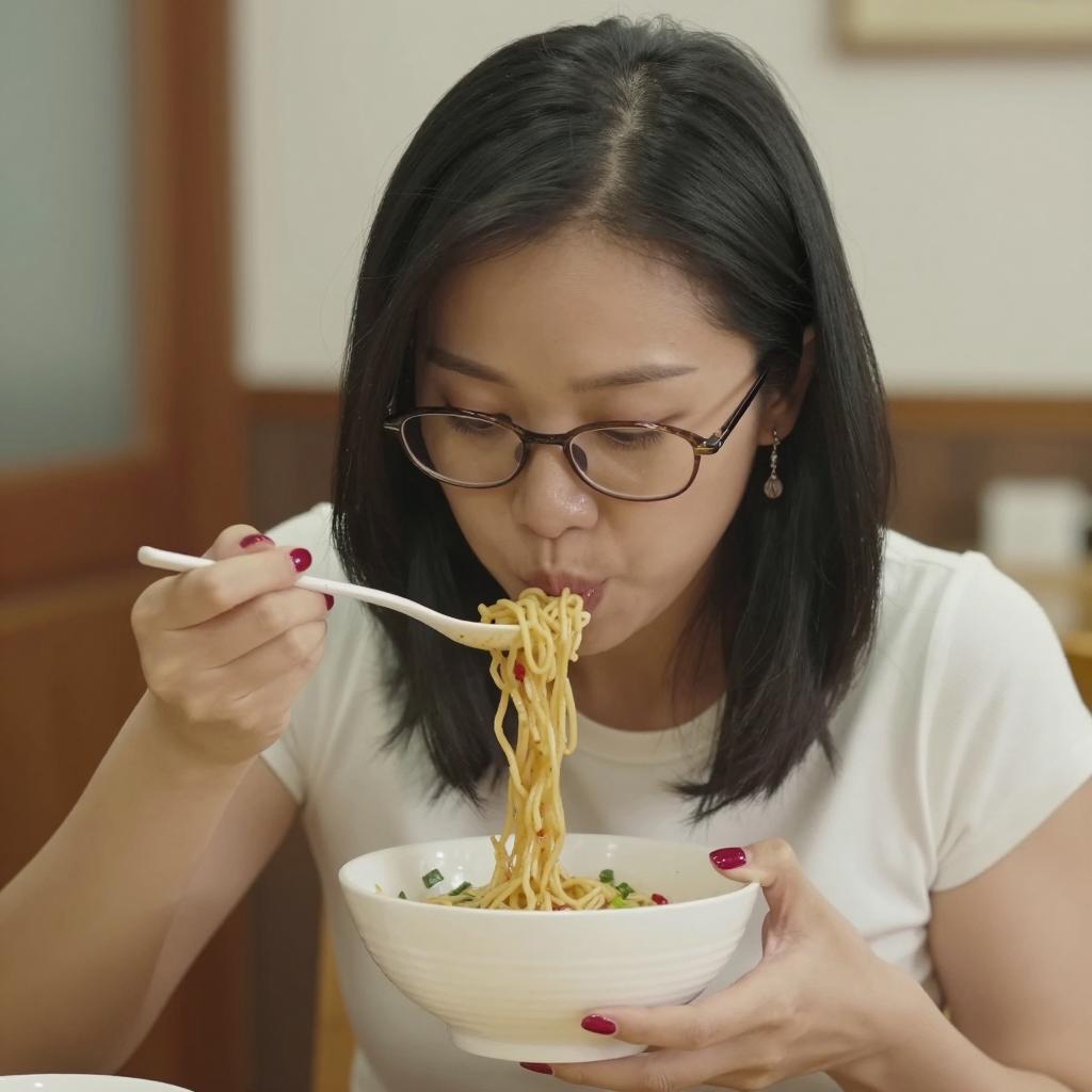 Dining Asian Woman with Chopsticks