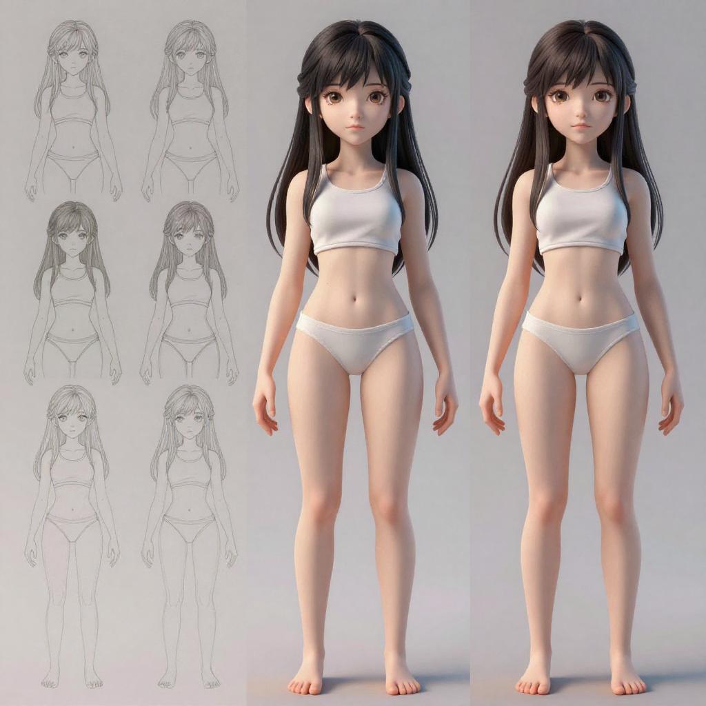 Photorealistic Monster Girl Full-Body Reference Sheet