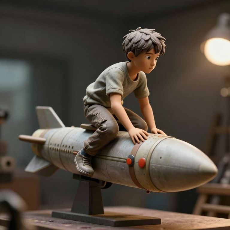 Photorealistic Boy Riding Missile