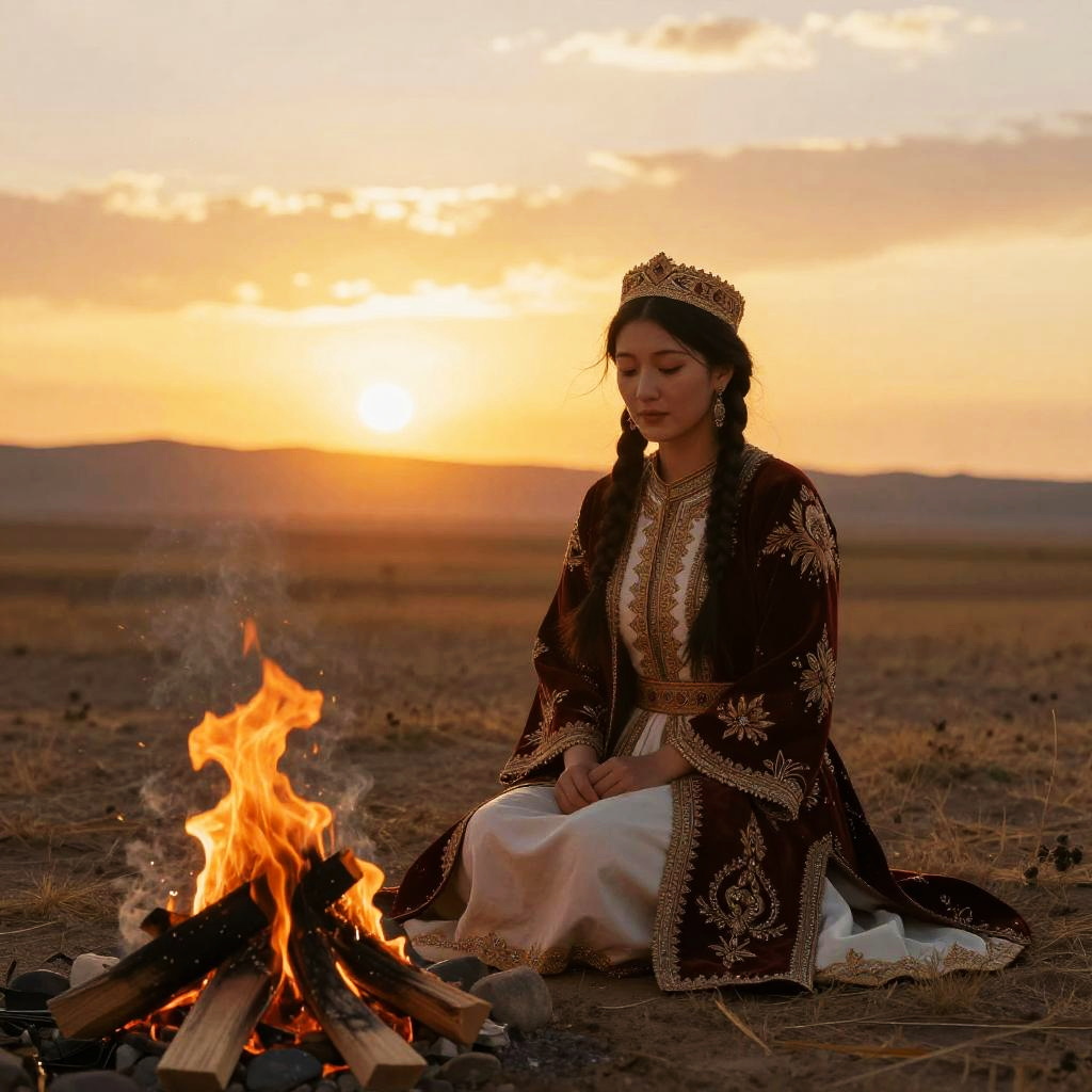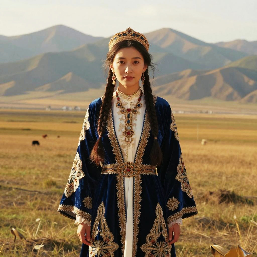 Elegant Kazakh Portrait in Traditional Attire