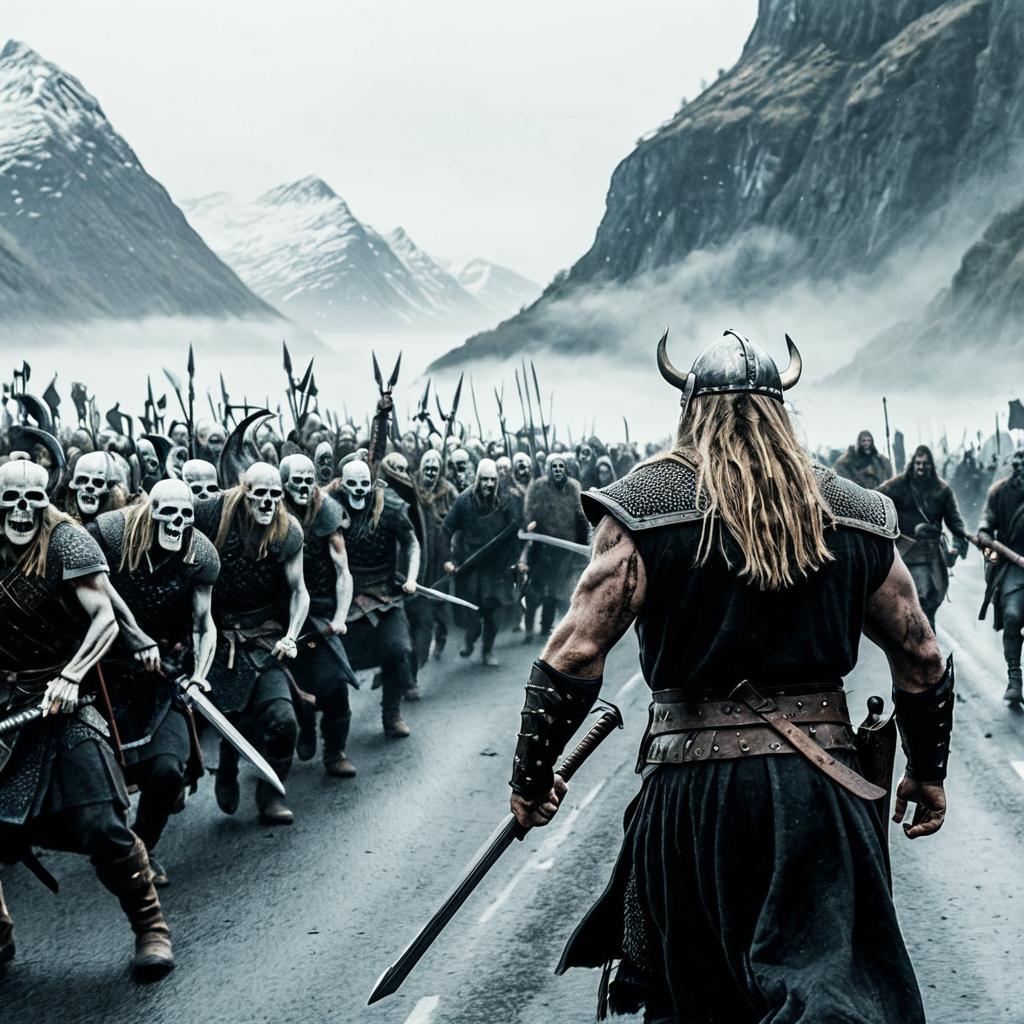 Viking Warrior Facing Undead Skeleton Army