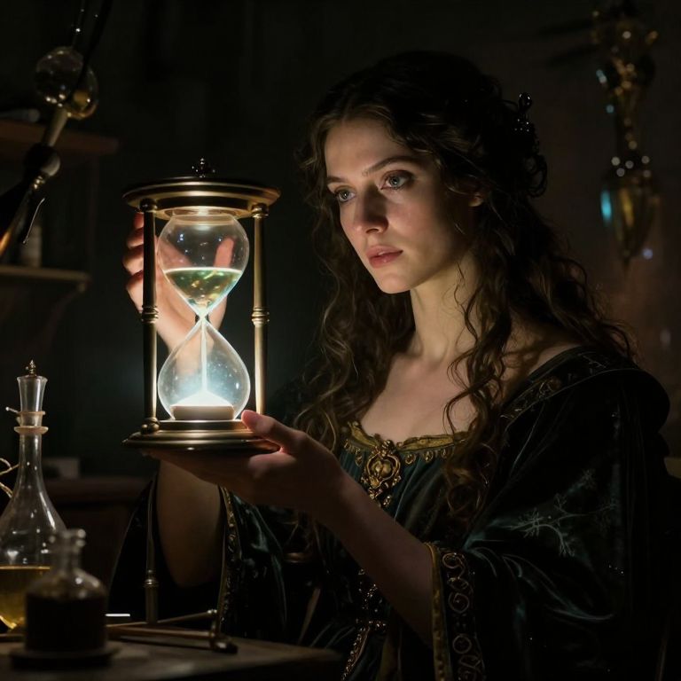 In a whimsical apothecary of emotions, a woman sips from a glass imbued with the essence of bottled memories, her gaze drifting toward a shelf lined with vials containing the joys and sorrows of countless lives.
