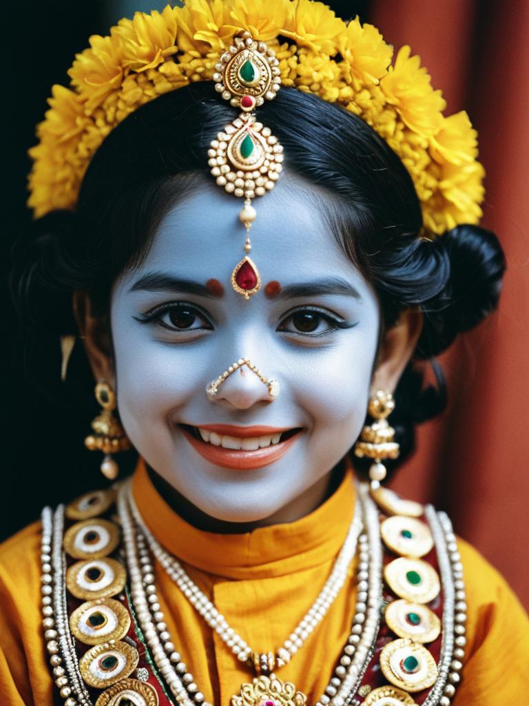 Smiling Indian Girl in Traditional Krishna Jayanthi Costume