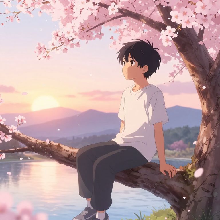 Isekai masterpiece anime man standing tree log looking up at colossal crystalized stars, high noon, cinematic, very warm colors, intense shadows, layered stratocumulus clouds, anime illustration, anime screenshot composite background