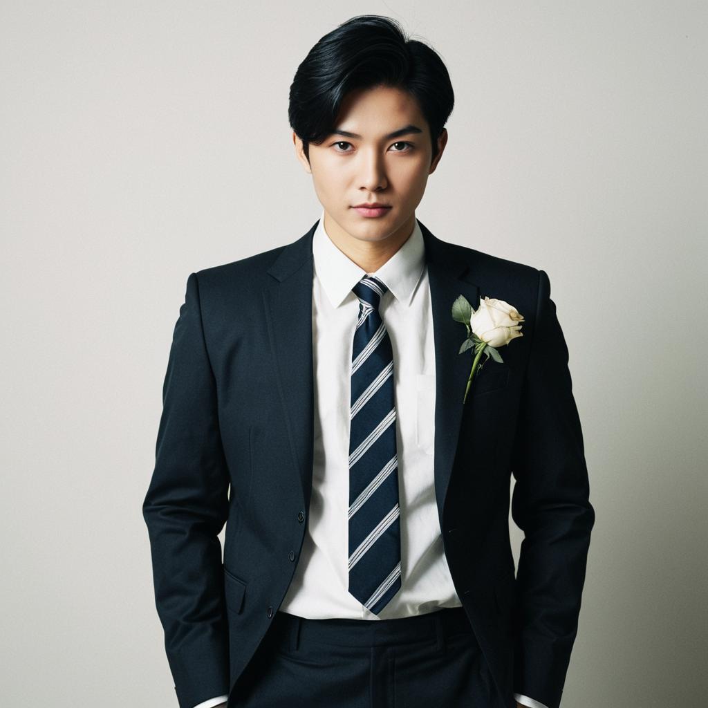 Young Asian Man in Black Suit