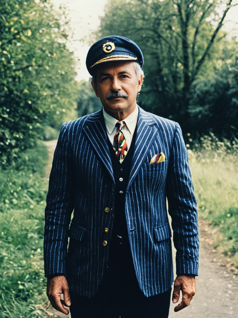 Man in Themed Outfit, photorealistic outdoor portrait, daylight