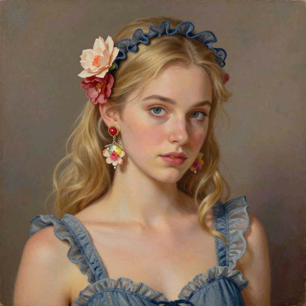 Piston /imagine Mexican woman with her back turned and colorful ribbons in her hair. Warm colors. Cinematic. Painting.,