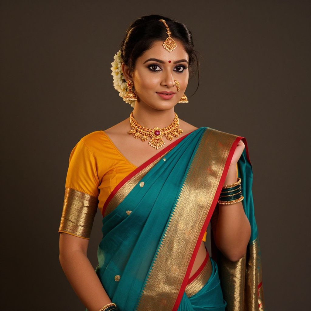 "Wedding Dress Saree Style, a close up of a woman in a sari posing for a picture"