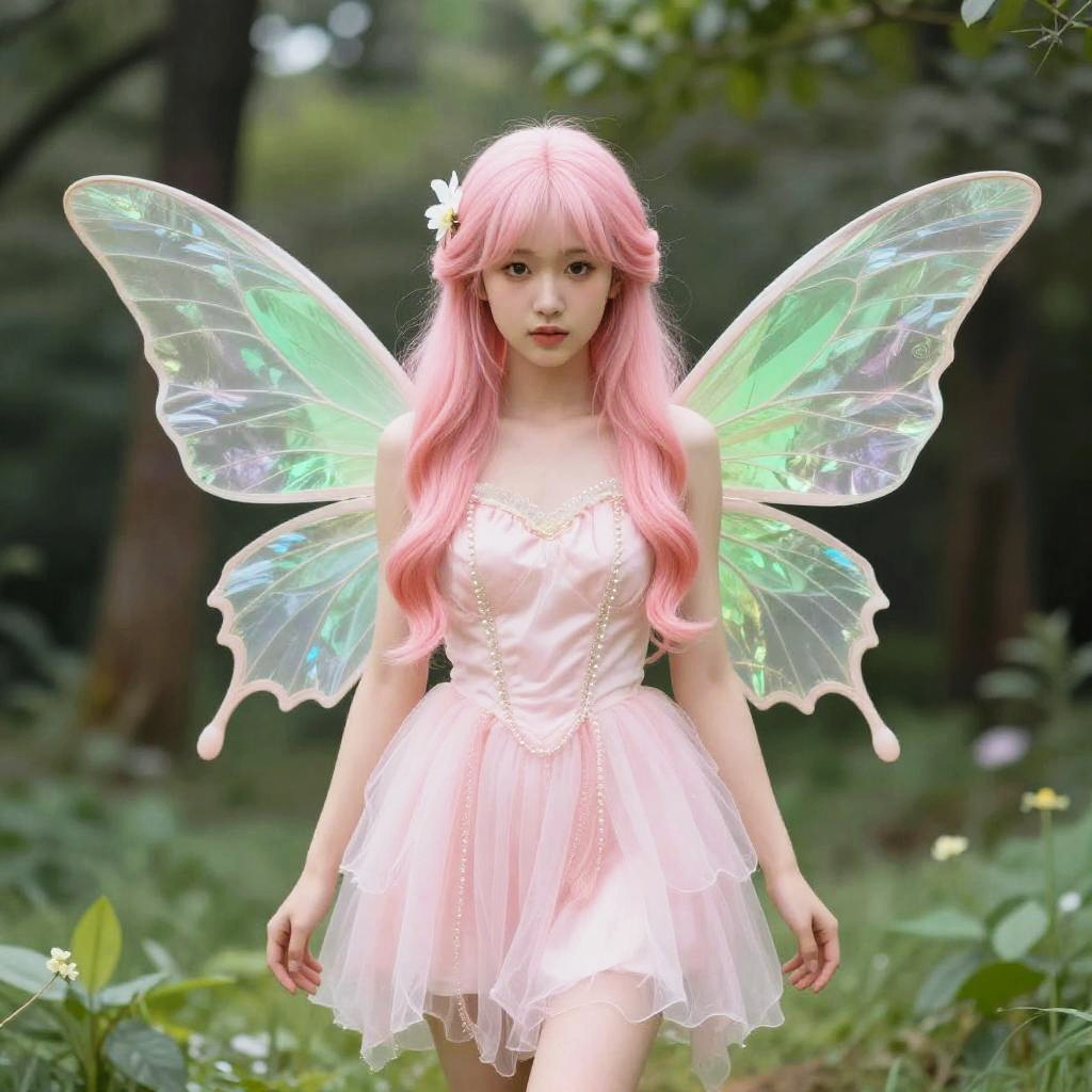 Pink And Green Fairy, fairy with pink hair and green wings and a pink dress