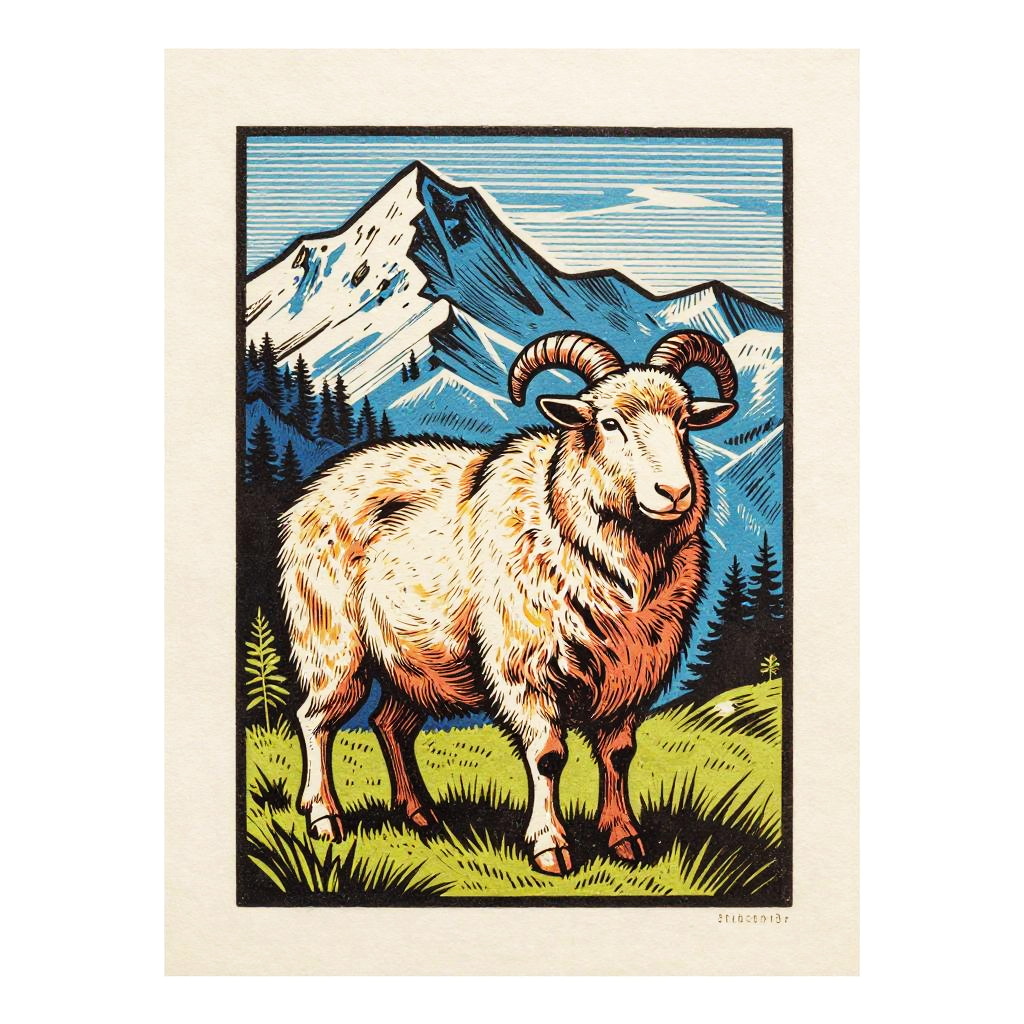 Rustic Woodcut Mountain Shepherd Portrait