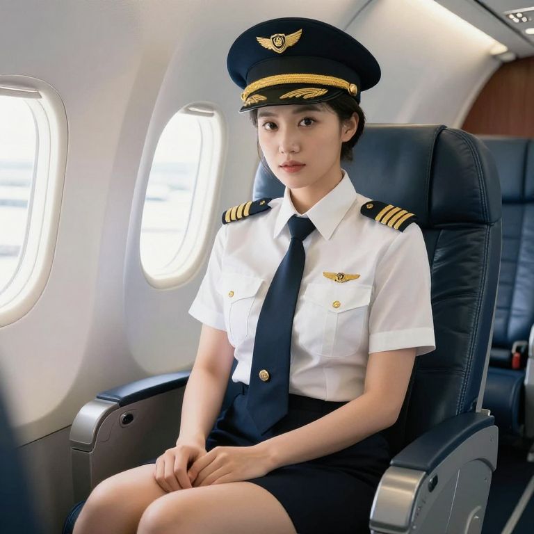 Female Pilot in Uniform Seating